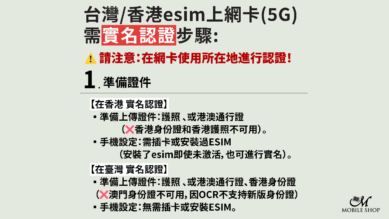 ⚠Taiwan 5G/Registration required, passport number must be uploaded.